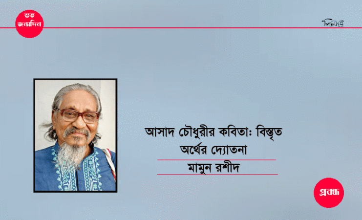 আসাদ চৌধুরীর কবিতা বিবৃতিময় না। তিনি অল্প কথায়, সীমিত শব্দের বন্ধনে ভাবকে মুক্তি দেন। অতীত এবং ভবিষ্যতের মাঝে দাঁড়িয়ে সেতুবন্ধনের সূত্র খোঁজেন। সেইসঙ্গে তিনি রবীন্দ্রপ্রভাবকে স্বীকার করে, আত্মস্থ করে ব্যক্তিত্ববোধকে নির্মাণ করেন। ত্রিশের দশকের বাংলা কবিতার স্ফুরণ ঘটেছিল রবীন্দ্রবিরোধিতার মধ্য দিয়ে। রবীন্দ্রনাথ ঠাকুর এবং তার প্রভাবকে অস্বীকার করে কাব্য রচনার মধ্য দিয়ে কবিতাকে আধুনিকতার ফ্রেমে ফেলার স্বেচ্ছা-উদ্যোগের ধারা পরবর্তীকালেও চলে আসে। ষাটের দশকের যে অস্থির সময়-পর্ব,রাজনৈতিক এবং সামাজিক সংঘাতের মধ্যে দিয়ে একটি নতুন স্বপ্নের আশায় মানুষ নৈরাশ্য, দ্বন্দ্ব এবং সংশয়ের মধ্য থেকে বেরিয়ে আসার পথ খুঁজছে। যখন নিজেকে প্রকাশের, আত্মবিবৃতির মধ্য দিয়ে মানুষ মুক্তি দিতে চাইছে ভাবনাকে। সেই জটিল সময়াবর্তের ভেতর রবীন্দ্রনাথকে আত্মস্থ করে রাবীন্দ্রিক শব্দপুঞ্জকে ক্রিয়াশীল রেখে শুরু থেকেই আসাদ চৌধুরী নিজেকে ব্যতিক্রম করে তুলতে চেয়েছেন। তাই তার কবিতায় ব্যবহৃত শব্দে, উপমায়, বর্ণনায় বারে বারে ঘুরে আসে রাবীন্দ্রিক আবহ। যেখানে উজ্জীবিত হওয়ার মতো উপাদান যেমন রয়েছে,তেমনি রয়েছে কবির চেতনার মুক্তি অন্বেষাও।